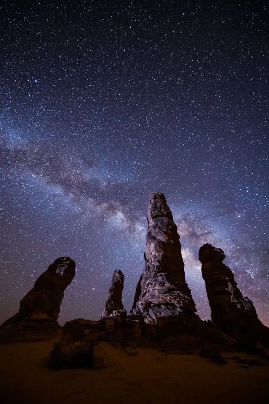 انطلق في رحلة لا تُنسى إلى غراميل لتستمتع بمنظر نادر لدرب التبانة. وسط التكوينات الصخرية الخلابة في غراميل، تُنير ملايين النجوم سماء الليل، مُشكّلةً مشهدًا ساحرًا.